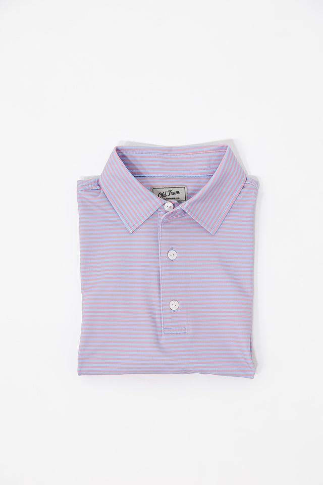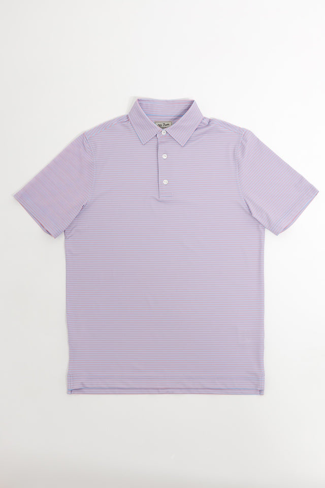 Old Tram William Stripe Performance Polo- Blue/Pink